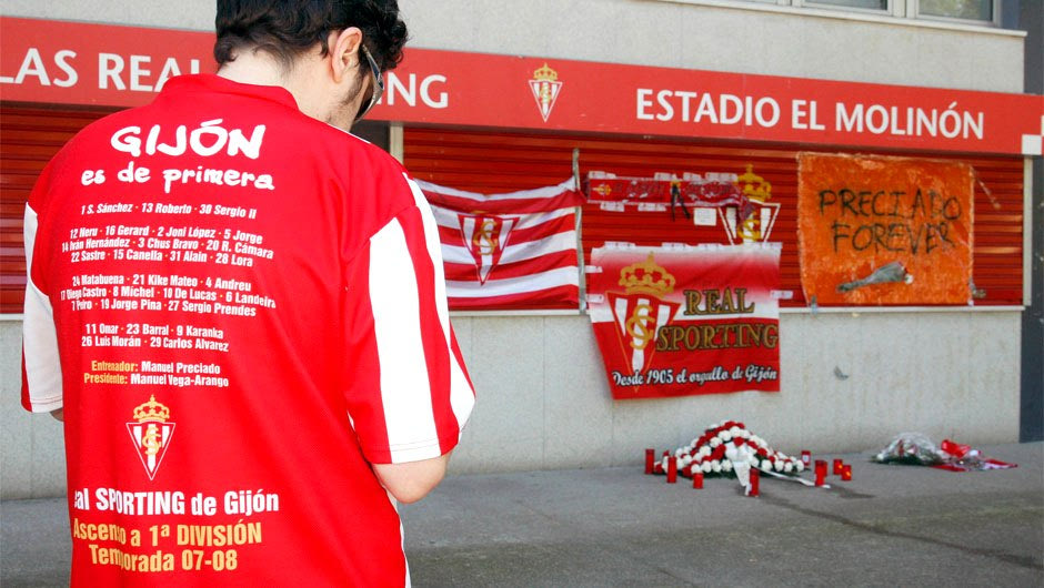 Φίλαθλος της Σπόρτινγκ έξω από το «El Molinon», με την αναμνηστική φανέλα της ανόδου στην Πριμέρα Ντιβισιόν την περίοδο 2007-08.