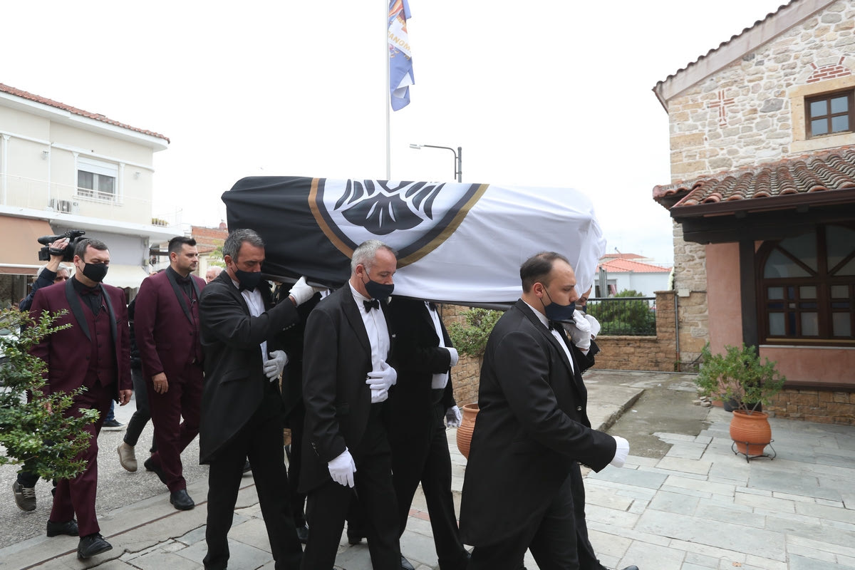 Τον Σταύρο Σαράφη, τον θρυλικό "Καίσαρα" του ΠΑΟΚ αποχαιρέτισαν φίλοι και γνωστοί στην Επανομή, με τη σημαία του Δικεφάλου να συντροφεύει στην τελευταία του κατοικία.