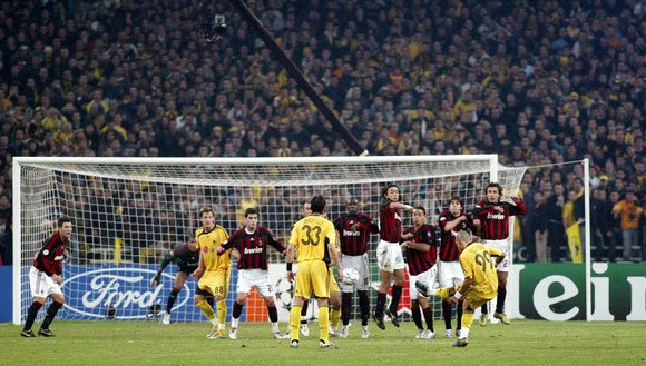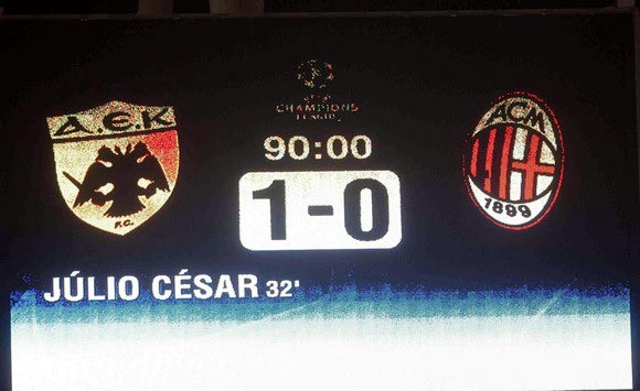 Ήταν από την απευθείας εκτέλεση φάουλ του Ζούλιο Σέζαρ, που η μπάλα κατέληξε στα δίχτυα της εστίας του Ντίντα και έδωσε, έτσι, την ευκαιρία σε 56.203 φιλάθλους που γέμισαν το Ολυμπιακό Στάδιο να ξεσπούν σε ξέφρενους πανηγυρισμούς για το τελικό αποτέλεσμα. ΑΕΚ – Μίλαν 1-0.