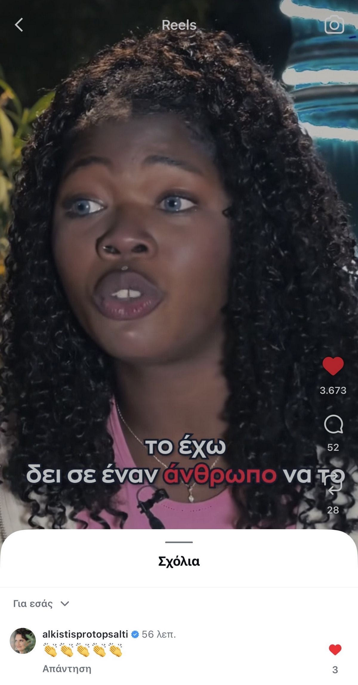 Τα σχόλια ήταν πολλά, καθώς τα λόγια της αδερφής του, Στέλλας, για τον τρόπο που μεγάλωσαν, είναι δεδομένο πως προκάλεσαν συγκίνηση σε πολύ κόσμο. Μάλιστα, μεταξύ αυτών ήταν και η σπουδαία καλλιτέχνιδα, Άλκηστις Πρωτοψάλτη, η οποία αντέδρασε με… χειροκρότημα σε όσα είπε η Στέλλα για τον αδερφό της.