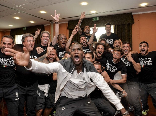 Οι συμπαίκτες άρχισαν τα τραγούδια και τα συνθήματα, οι συμπάνιες έρρεαν άφθονες, ο Αντόνιο Κόντε συμμετείχε στους πανηγυρισμούς με την ίδια ζωντάνια που είχε ως παίκτης των “μπιανκονέρι” (αυτό ήταν το 3ο του πρωτάθλημα ως προπονητής ενώ έχει και 5 με τη φανέλα της Γιούβε) ενώ φυσικά το ντεσού της βραδιάς ήταν τα μπλουζάκια που φόρεσαν όλοι οι παίκτες.