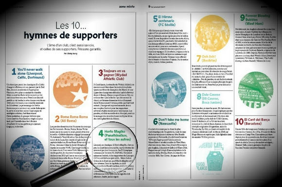 Για μια ακόμη χρονιά το "Το χόρτο μαγικό" συγκαταλέγεται μεταξύ των κορυφαίων συνθημάτων σύμφωνα με το France Football. Στην κορυφή το θρυλικό "You'll never walk alone" (VIDEOS, PHOTO).