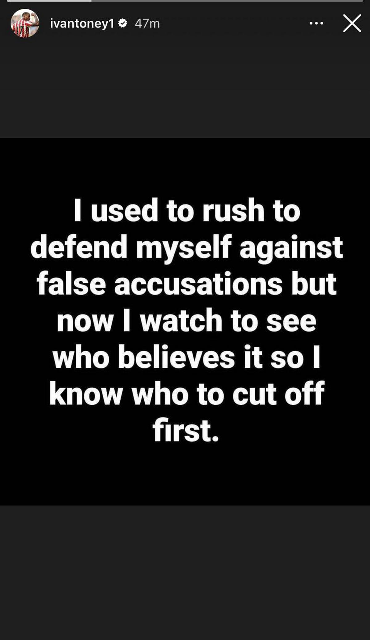 Μετά από την τιμωρία του με αποκλεισμό οκτώ μηνών από το ποδόσφαιρο για παράνομο στοιχηματισμό, ο Ιβάν Τόνι προχώρησε σε ένα instagram story στο οποίο αφήνει αιχμές για το περιστατικό, κάνοντας λόγο για “ψευδείς κατηγορίες”.