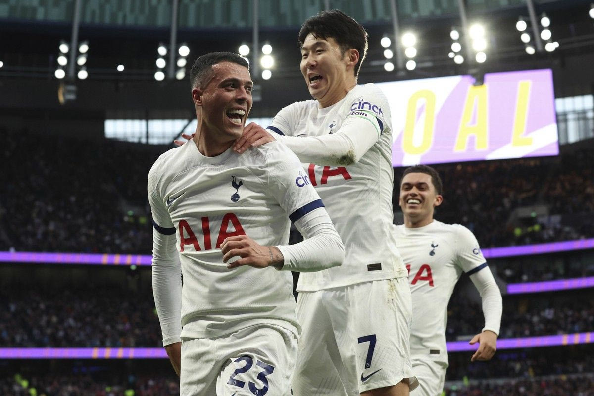 Οι παίκτες της Τότεναμ πανηγυρίζουν γκολ που σημείωσαν κόντρα στη Νότιγχαμ για την Premier League 2023-2024 στο "Τότεναμ Χότσπερ Στέιντιουμ", Λονδίνο | Κυριακή 7 Απριλίου 2024