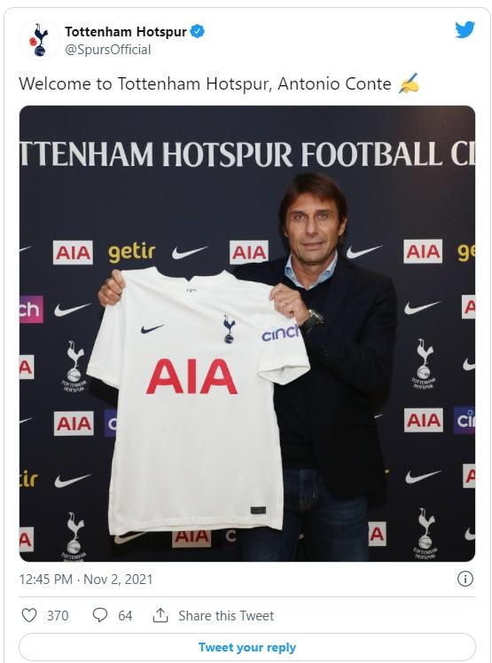 Η Τότεναμ βρήκε τον νέο της προπονητή. Τα σπιρούνια ανακοίνωσαν την πρόσληψη του Αντόνιο Κόντε στον πάγκο της ομάδας, ο οποίος έβαλε την υπογραφή του σε συμβόλαιο μέχρι το καλοκαίρι του 2023, ωστόσο λίγα λεπτά αργότερα διέγραψαν την εν λόγω ανάρτηση.