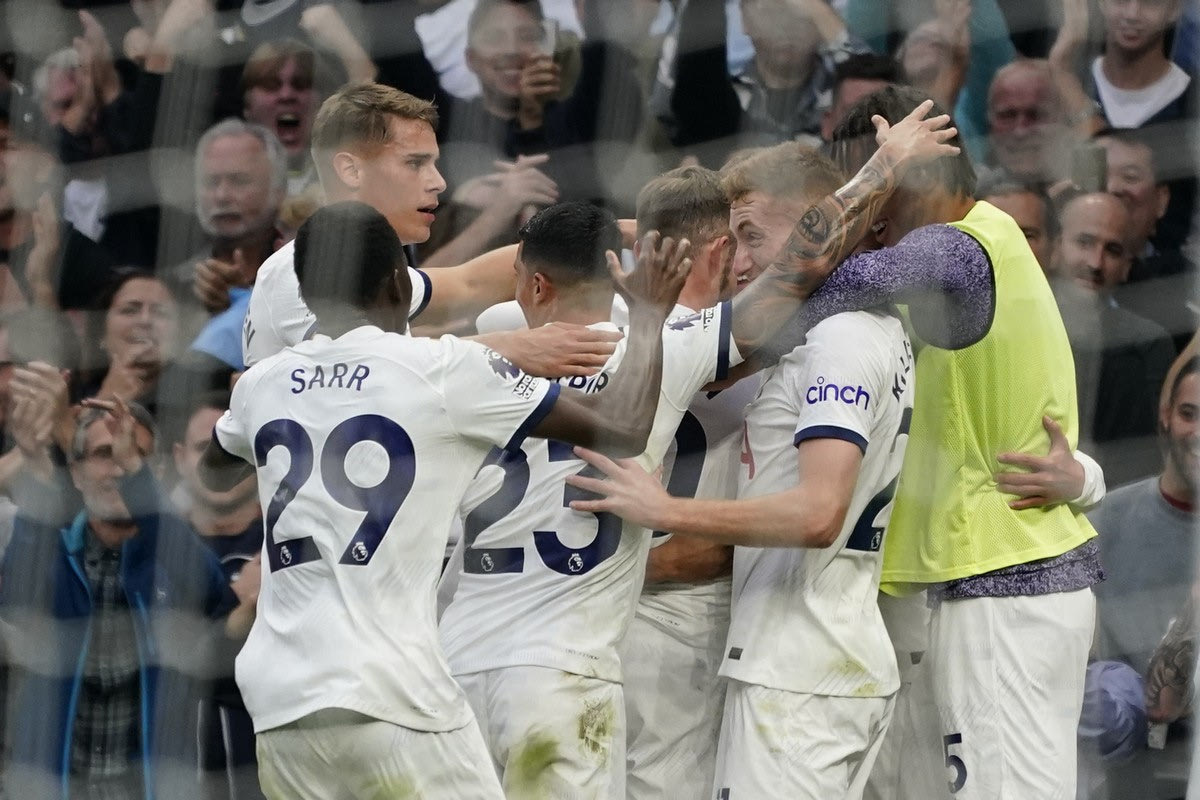 Οι παίκτες της Τότεναμ πανηγυρίζουν γκολ κόντρα στην Λίβερπουλ σε ματς της Premier League | 30 Σεπτεμβρίου 2023 @2023 Alberto Pezzali/AP IMAGES