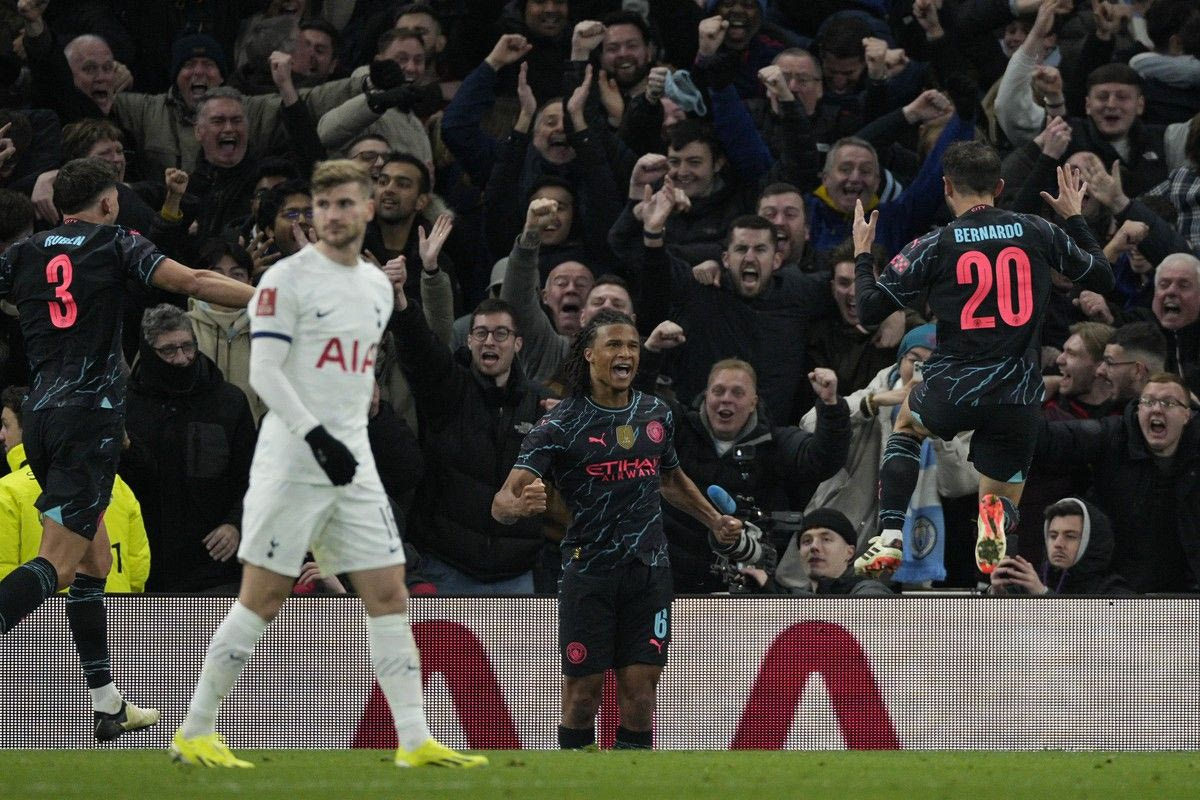 Ο Νέιθαν Άκε της Μάντσεστερ Σίτι πανηγυρίζει γκολ που σημείωσε κόντρα στην Τότεναμ για τη φάση των 32 του FA Cup 2023-2024 στο "Τότεναμ Χότσπερ Στέιντιουμ", Λονδίνο | Παρασκευή 26 Ιανουαρίου 2024