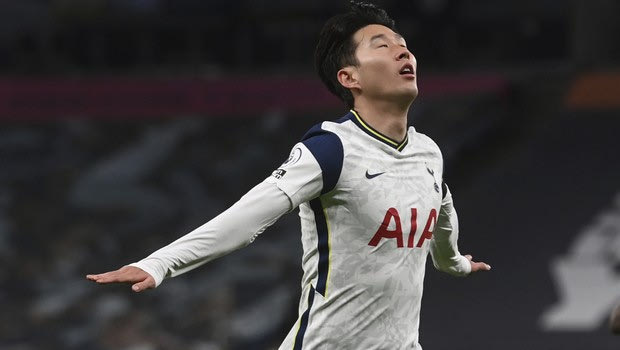 Ο Σον πανηγυρίζει το γκολ που πέτυχε κόντρα στον Μάντσεστερ Σίτι Neil Hall/Pool via AP