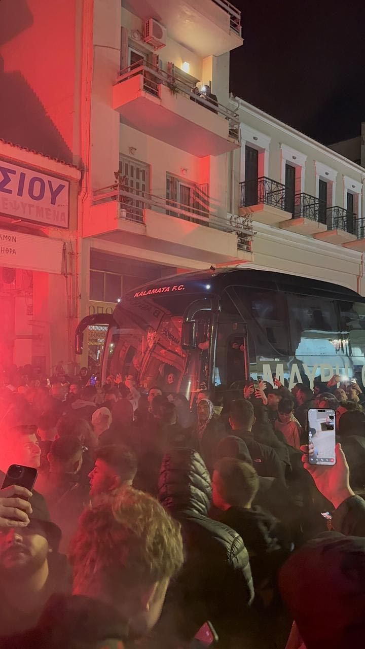 Οι Καλαματιανοί αποθέωσαν σαν ήρωες τους παίκτες του Βοσνιάδη, ενώ η νύχτα έγινε μέρα από τα δεκάδες καπνογόνα. Το πούλμαν κινούταν με πολύ μικρές ταχύτητες και οι παίκτες της Μαύρης Θύελλας απολαμβάναν κάθε στιγμή.