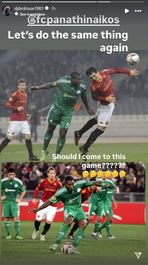 Αυτά τα ματς θυμήθηκε και ο Τζιμπρίλ Σισέ και το έκανε story στον λογαριασμό του στο Instagram. “Πάμε να κάνουμε το ίδιο πράγμα ξανά”, ήταν η μια φράση του κάνοντας ταγκ και τον Παναθηναϊκό, ενώ στη συνέχεια αναρωτήθηκε, “ίσως να έρθω σε αυτό το παιχνίδι;”.