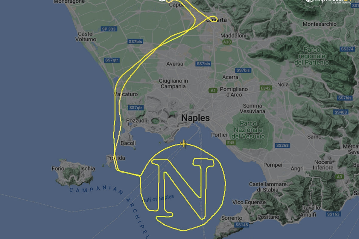 “Φαίνεται ότι ένας οπαδός βρήκε έναν ιδιαίτερο τρόπο για να γιορτάσει τον τίτλο της Νάπολι”, έγραψε η flightradar24 στην ανάρτηση που έκανε.