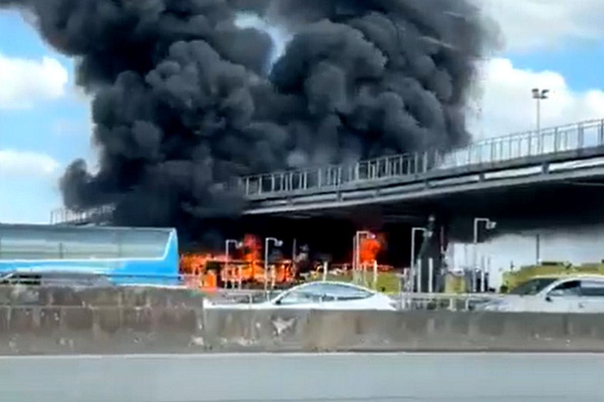 Αυτό είχε ως αποτέλεσμα να τυλιχθούν στις φλόγες δύο εκ των πούλμαν, ενώ χαρακτηριστικά είναι και οι συγκρούσεις στη μέση του δρόμου μεταξύ των οπαδών των δύο ομάδων.