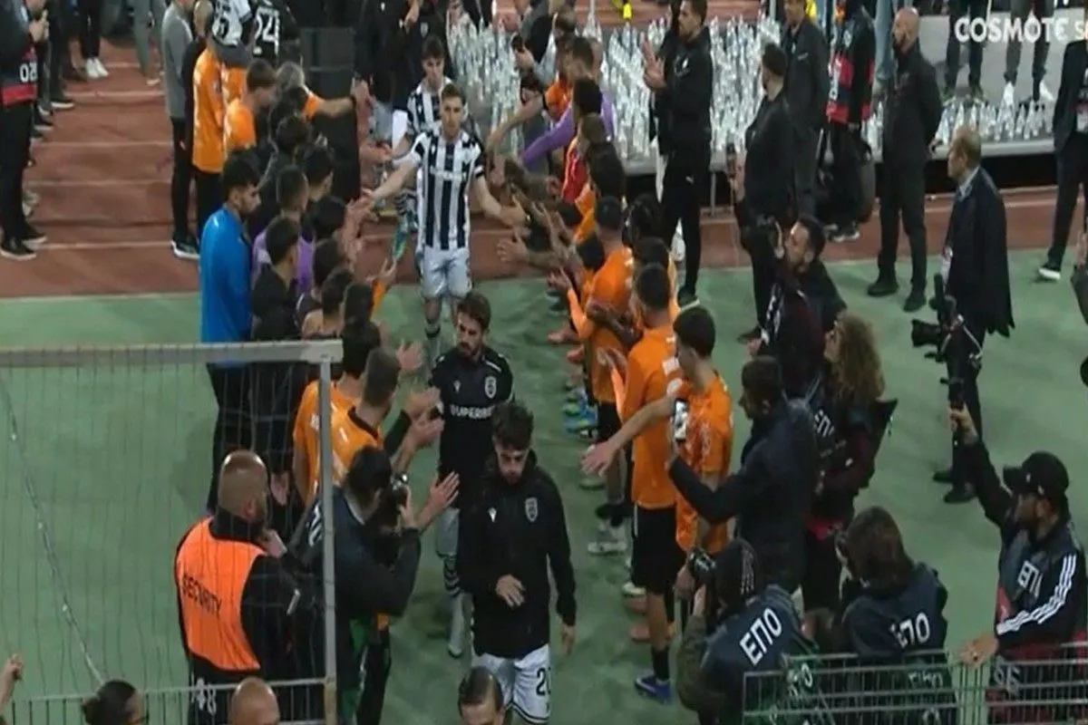 Υπέροχη στιγμή στο Πανθεσσαλικό, καθώς οι παίκτες του ΟΦΗ έκαναν pasillo στους παίκτες του ΠΑΟΚ, όταν πήγαν για να παραλάβουν τα μετάλλιά τους.
