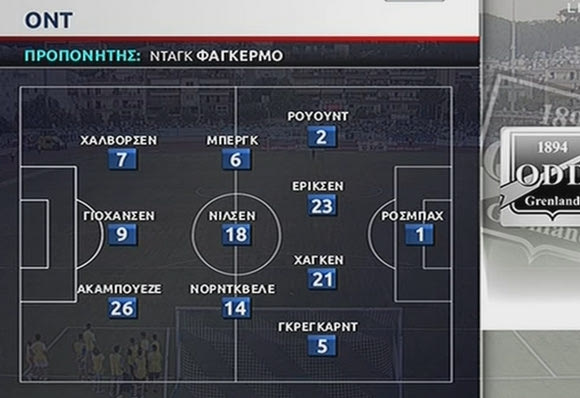 ΟΝΤ ΓΚΡΕΝΛΑΝΤ (Φαγκέρμο): Ρόσμπαχ, Ρουντ, Γκρόγκαρντ, Μπεργκ (46′ Γένσεν), Χάλβορσεν, Γιόχανσεν, Νόρντκβελε (86′ Μπέργκαν), Νίλσεν (74′ Χάουγκεν), Χάγκεν, Έρικσεν, Ακαμπουέζε