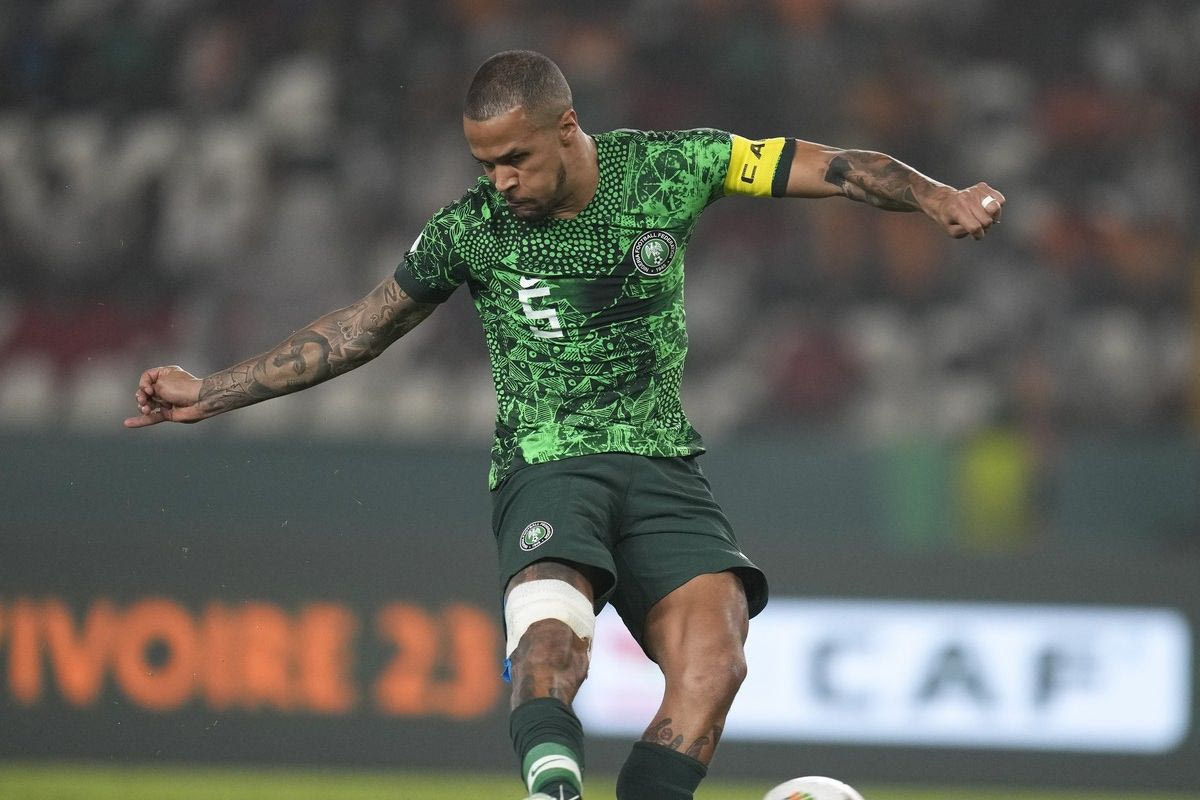 Nigeria's William Troost-Ekong scores from the penalty spot during the African Cup of Nations semifinal soccer match between Nigeria and South Africa, at the Peace of Bouake stadium in Bouake Bouake, Ivory Coast, Wednesday, Feb. 7, 2024. (AP Photo/Themba Hadebe) AP