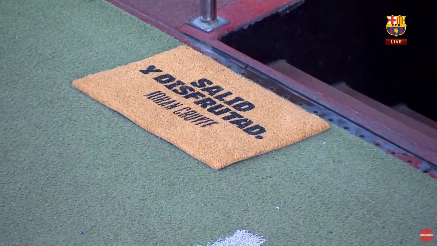 Το χαλάκι με το μότο του Γιόχαν Κρόιφ στο γήπεδο της Μπαρτσελόνα PRINT SCREEN