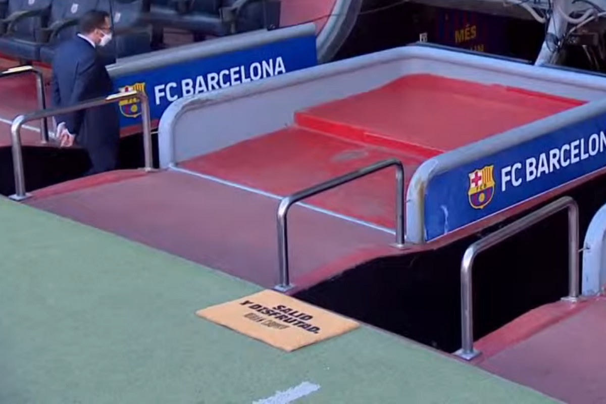 Το χαλάκι με το μότο του Γιόχαν Κρόιφ στο γήπεδο της Μπαρτσελόνα