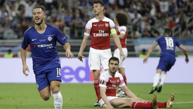 Η Τσέλσι σημείωσε τέσσερα γκολ στο δεύτερο ημίχρονο, επικράτησε 4-1 της Άρσεναλ στον τελικό του Europa League και κατέκτησε το τρόπαιο στο Μπακού. Δύο γκολ ο Αζάρ, στο τελευταίο του παιχνίδι με τους "μπλε".