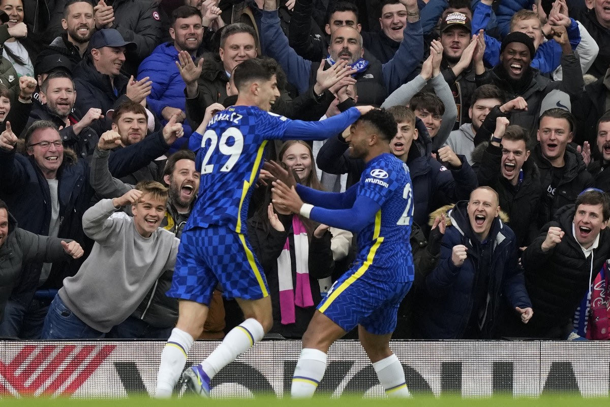 Χάβερτς και Τζέιμς πανηγυρίζουν γκολ της Τσέλσι κόντρα στην Μπέρνλι | 6 Νοεμβρίου 2021 @2022 Frank Augstein/AP IMAGES