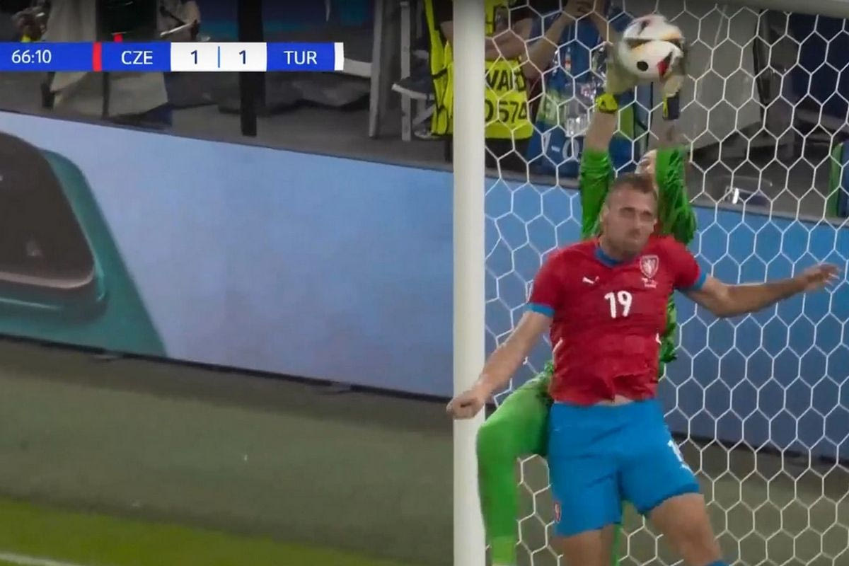 Ο Τόμας Σούτσεκ εκμεταλλεύτηκε το επικό λάθος του τερματοφύλακα της Τουρκίας, Γκιουνόκ, και με πλασέ από τη μικρή περιοχή ισοφάρισε σε 1-1 για την Τσεχία.