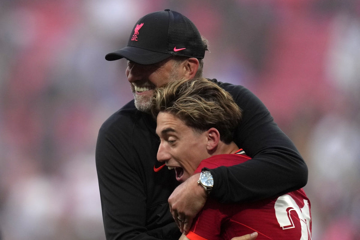 Ο Γιούργκεν Κλοπ έσπευσε να αγκαλιάσει τον Κώστα Τσίμικα αμέσως μετά την εύστοχη εκτέλεση πέναλτι που χάρισε το κύπελλο στην Λίβερπουλ.