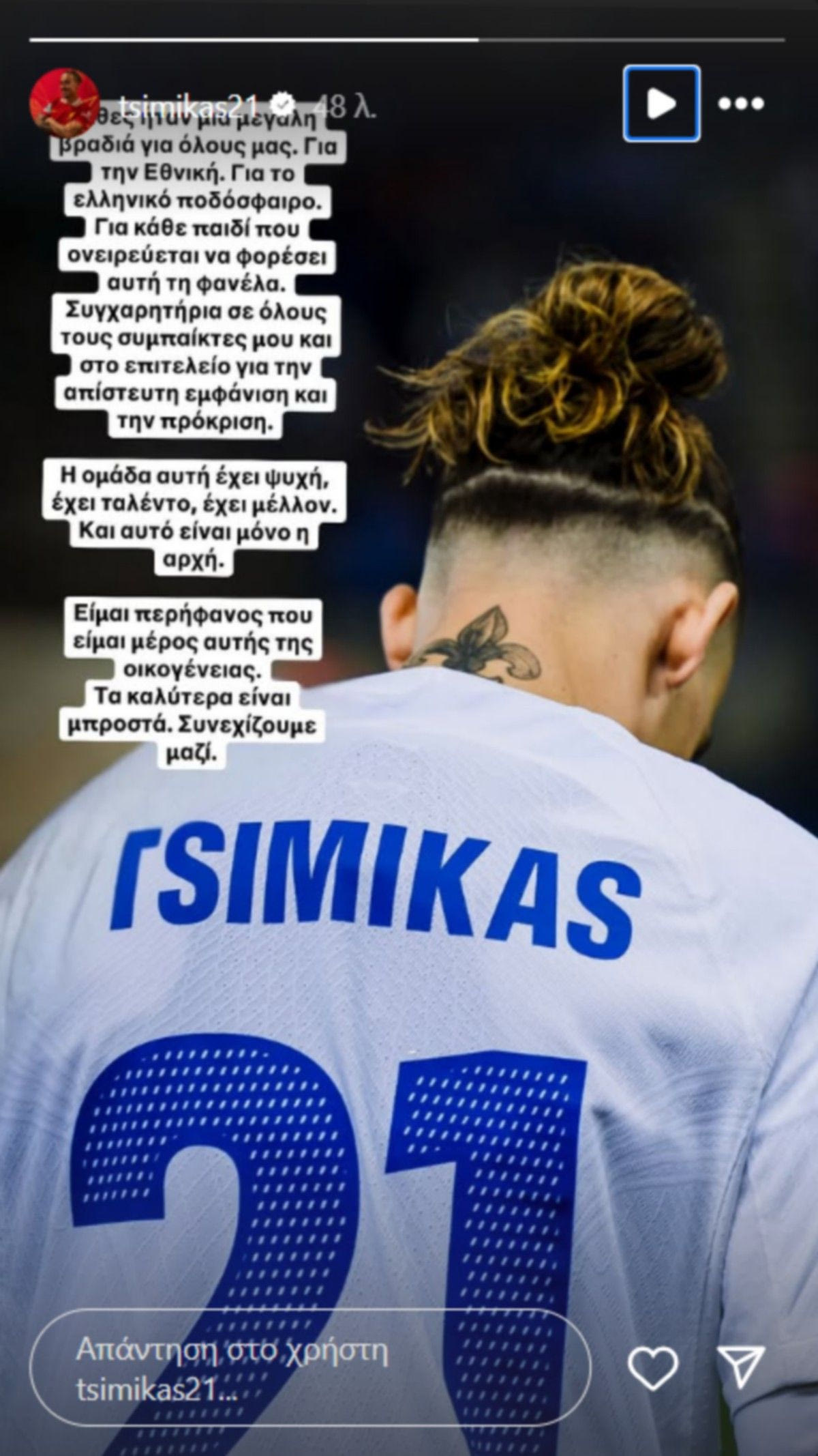 Ο Κώστας Τσιμίκας πανηγύρισε τη μεγάλη νίκη της Εθνικής Ελλάδας, τονίζοντας τη σημασία της επιτυχίας για το ελληνικό ποδόσφαιρο και τις επόμενες γενιές.