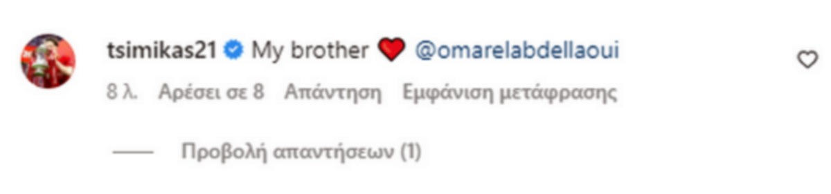 Ο διεθνής μπακ της Λίβερπουλ σχολίασε όσα είπε για εκείνον ο Ομάρ Ελαμπντελαουϊ γράφοντας κάτω από τη σχετική ανάρτηση του SPORT24: “Αδερφέ μου”.
