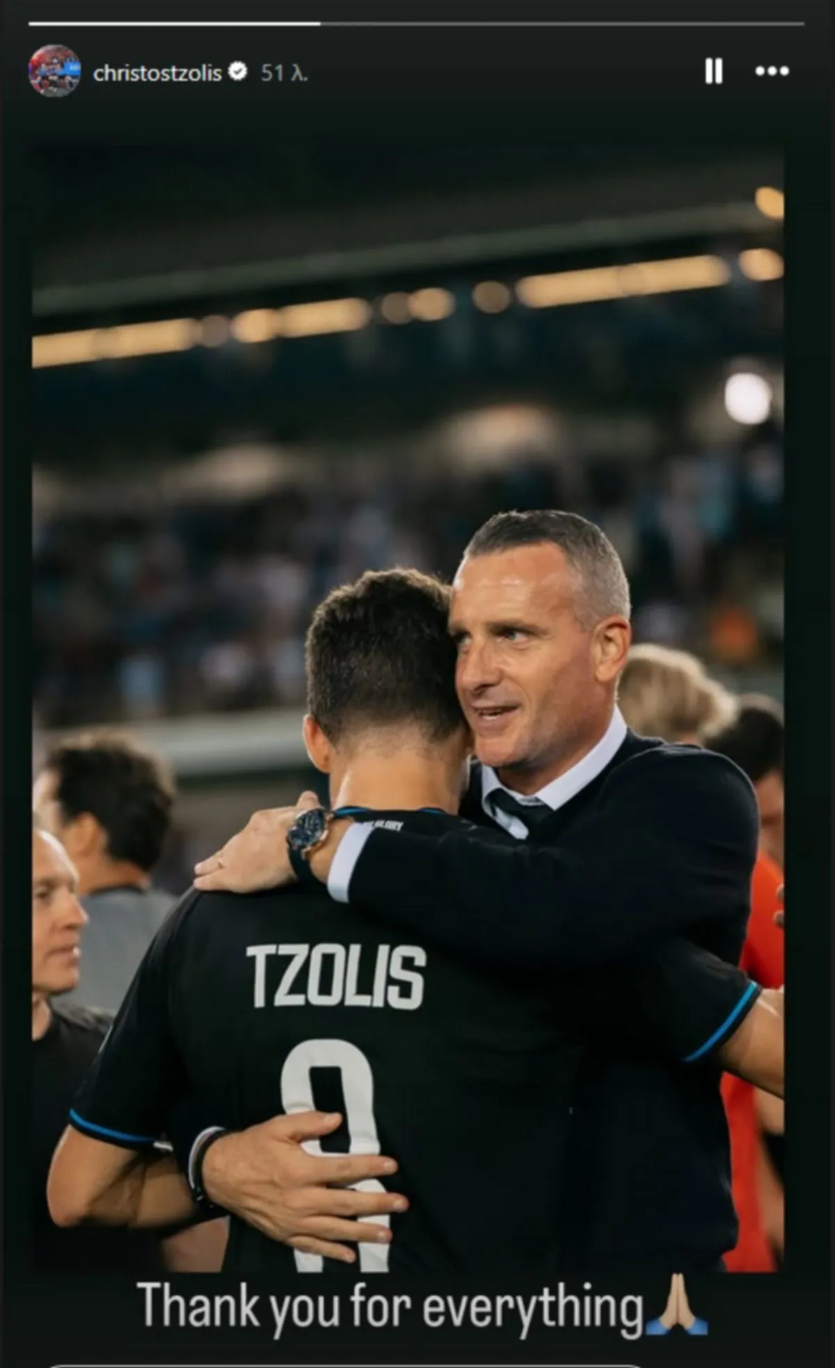 Λίγη ώρα πάντως μετά απο την επισημοποίηση του “αντίο” ο Χρήστος Τζόλης έσπευσε να τον αποχαιρετήσει μέσω Instastory, με τον διεθνή επιθετικό να δημοσιεύει φωτογραφία με θερμό εναγκαλισμό τους κατά τη διάρκεια αγώνα της Μπριζ και να τη συνοδεύει με τη φράση “Σε ευχαριστώ για όλα”.