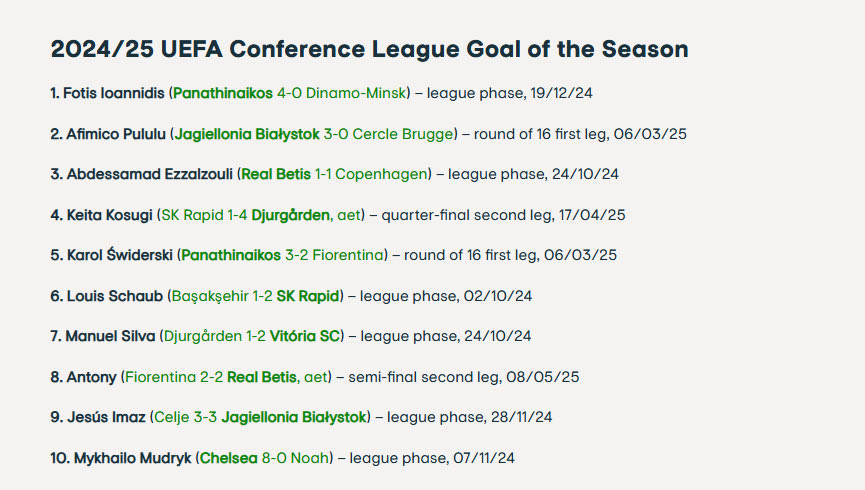 Με Κυπελλούχο την Τσέλσι ολοκληρώθηκε το φετινό Conference League, αφού η αγγλική ομάδα επικράτησε της Μπέτις στον τελικό του Βροτσλαβ. Η UEFA, λοιπόν, μοιράστηκε τη λίστα των κορυφαίων και στην κατηγορία “γκολ της σεζόν” την πρωτιά πήρε ο Φώτης Ιωαννίδης.