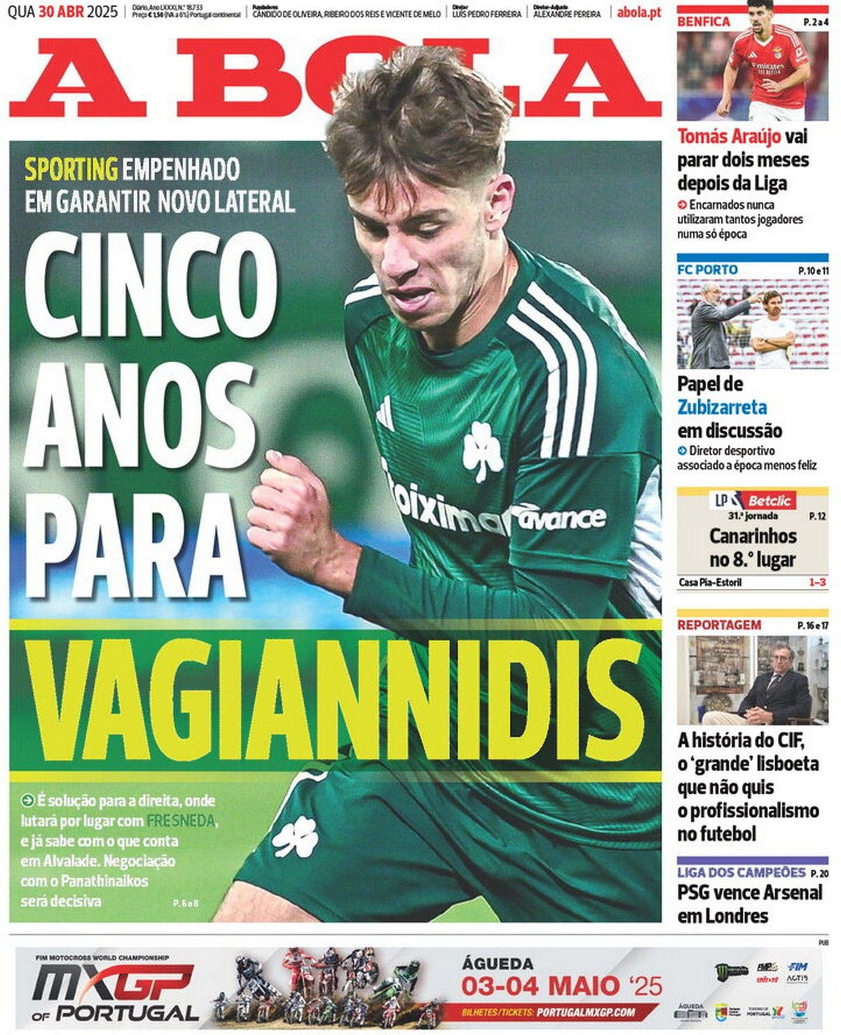 Ο λόγος για τον Γιώργο Βαγιαννίδη για τον οποίο έχει εκδηλώσει ενδιαφέρον εδώ και αρκετό καιρό, με την “A Bola” να έχει μάλιστα πρώτο θέμα τον 23χρονο δεξιό διεθνή μπακ στο σημερινό πρωτοσέλιδό της (30/4) και να αποκαλύπτει πως η πορτογαλική ομάδα είναι έτοιμη να ρίξει στο τραπέζι μία μεγάλη πρόταση για τον δελεάσει.