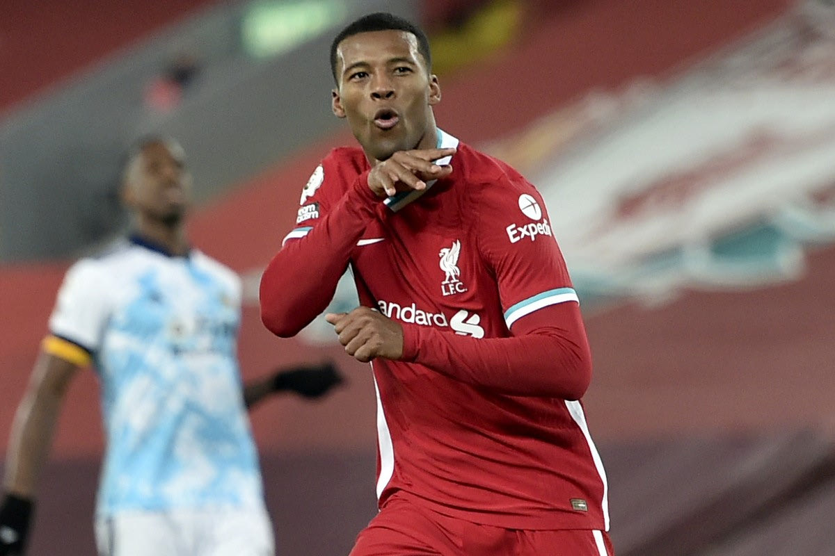 O Τζίνι Βαϊνάλντουμ πανηγυρίζει με τη φανέλα της Λίβερπουλ Peter Powell/Pool via AP