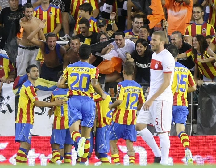 Τρία λεπτά αργότερα (9′) μετά από ωραία κυκλοφορία της μπάλας από τους παίκτες της Βαλένθια έξω από την περιοχή, ο Ποστίγκα έκανε το σουτ με τον Ρομπέρτο να μπλοκάρει την μπάλα.