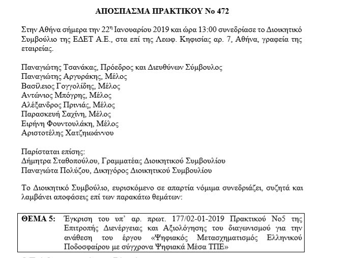Τι σημαίνει αυτό στην πράξη; Οτι τις επόμενες εβδομάδες θα περάσουν από νομικό έλεγχο, όπως απαιτείται για έργα που ξεπερνούν τα 5.000.000 ευρώ και εν συνεχεία, εφόσον δεν υπάρξει κάποιο απρόοπτο, θα υπογραφεί η σύμβαση και θα ξεκινήσει η υλοποίηση του VAR στα παιχνίδια του ελληνικού πρωταθλήματος για μια πενταετία.