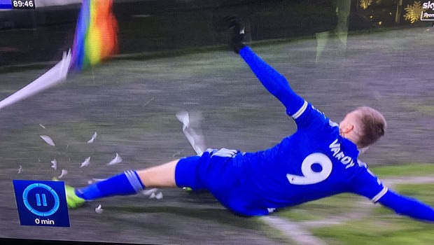 Ο Βάρντι διέλυσε το σημαιάκι του κόρνερ στον πανηγυρισμό για τη νίκη της Λέστερ