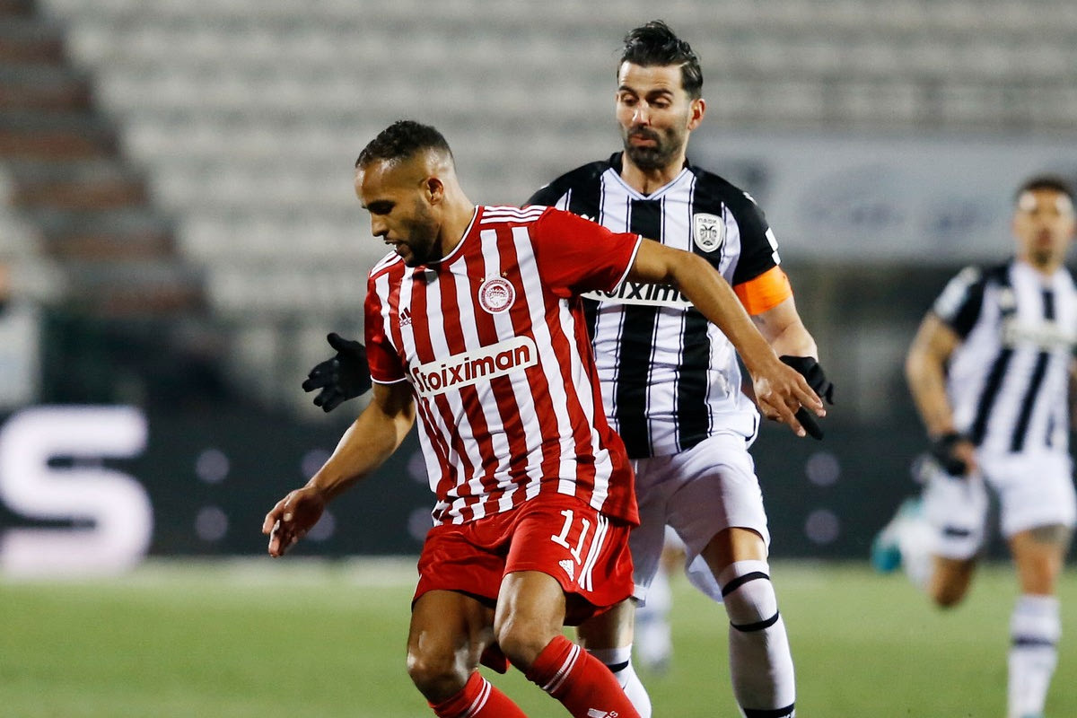 Ο Αραμπί με τον Κρέσπο μάχονται για την μπάλα στο ΠΑΟΚ - Ολυμπιακός EUROKINISSI