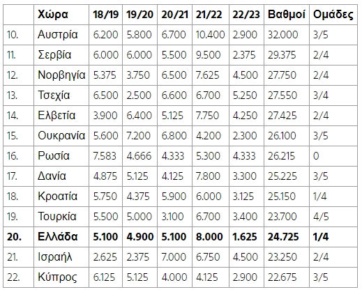 Η 18η θέση και κάτω (μέχρι την 28η δεν αλλάζει κάτι)