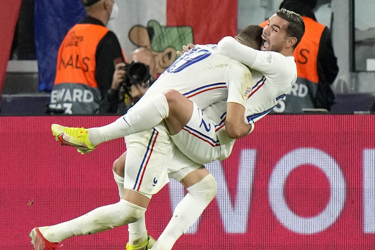 Οι Τέο Ερνάντεζ και Μπενζεμά πανηγυρίζουν το γκολ του πρώτου για το 3-2 της Γαλλίας επί του Βελγίου | 7 Οκτωβρίου