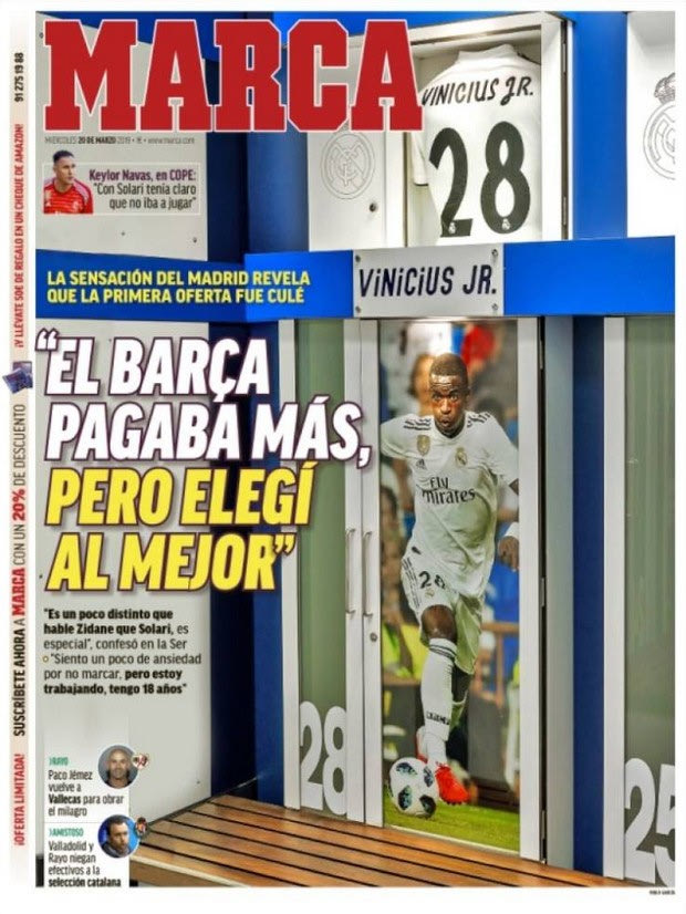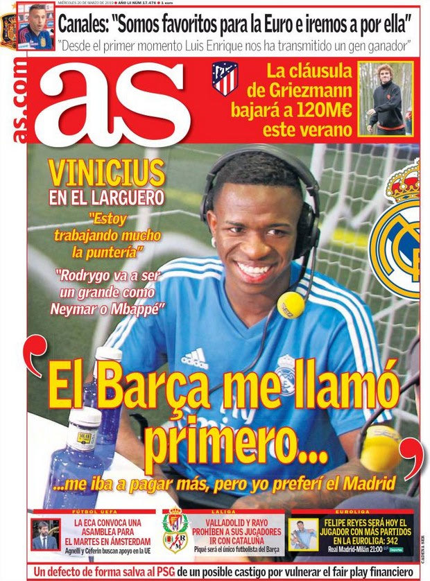 Ο 18χρονος Βινίσιους Τζούνιορ είναι ένα από τα μεγαλύτερα ταλέντα της Ρεάλ Μαδρίτης με τους “Μερένγκες” να έχουν επενδύσει πολλά πάνω του. Σε συνέντευξη του στον ραδιοφωνικό σταθμό “Cadena SER” και την εκπομπή “El Larguero” αποκάλυψε ότι υπήρξε ενδεχόμενο να συστηθεί στο κοινό με διαφορετικά χρώματα.