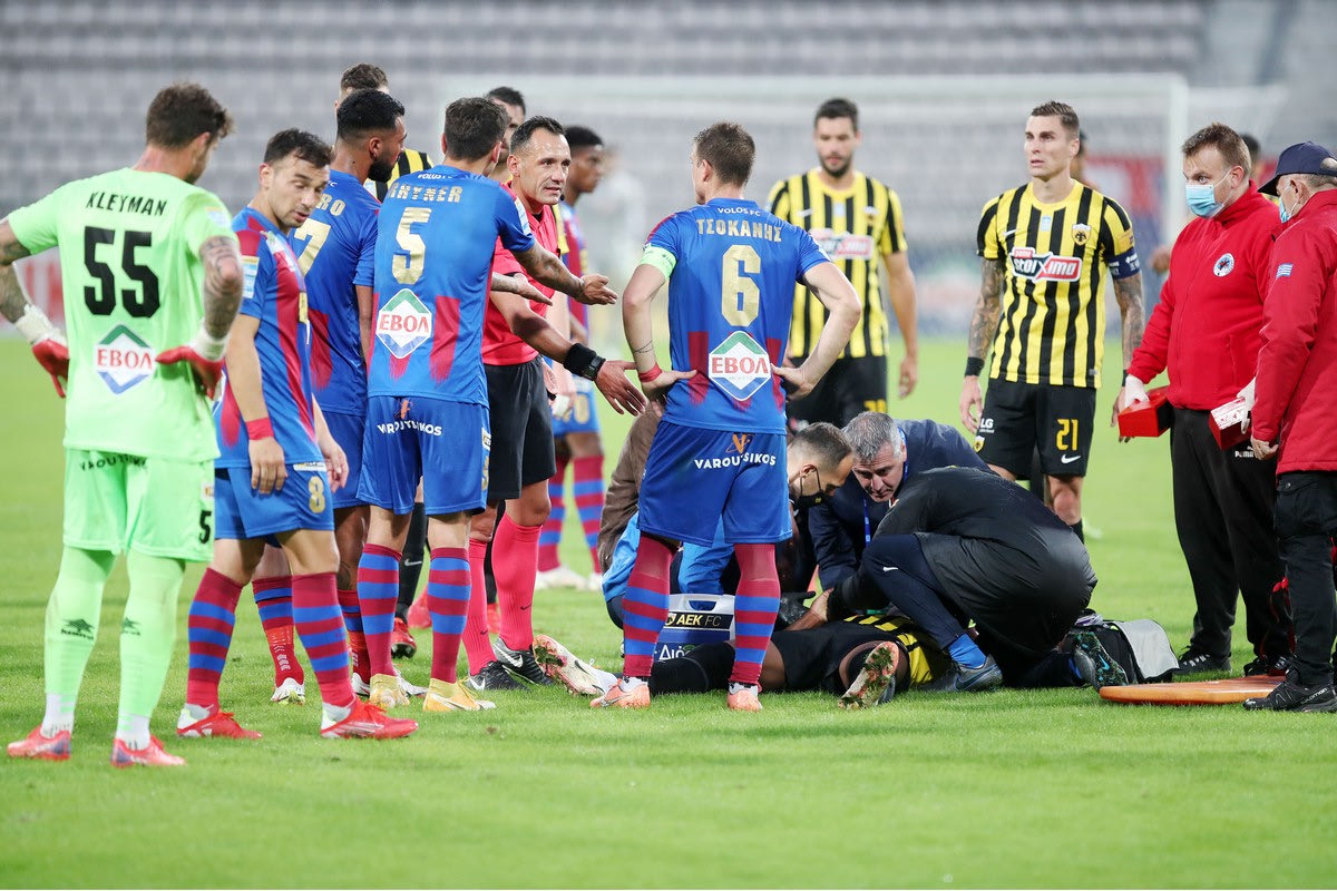 Βόλος – ΑΕΚ: Ανατριχιαστική πτώση και τραυματισμός του Λιβάι, έφυγε με φορείο και κολάρο στον αυχένα