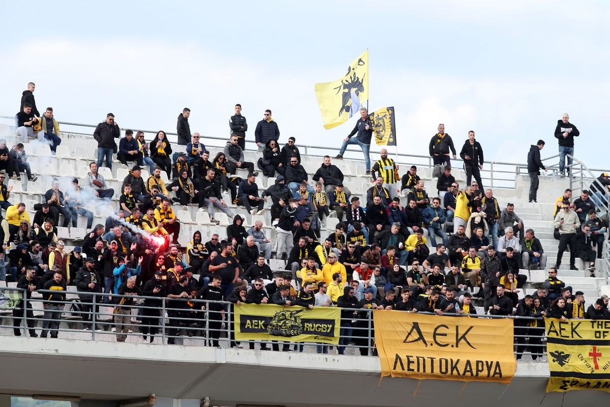 Η ΑΕΚ αντιμετώπισε τον Βόλο στο Πανθεσσαλικό, με τους φίλους της Ένωσης να δίνουν δυναμικό παρών στις εξέδρες του Πανθεσσαλικού για να σπρώξουν την ομάδα τους στη δεύτερη σερί νίκη στα playoffs της Stoiximan Super League.