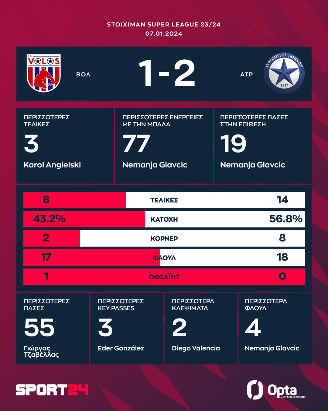 Τα στατιστικά οι καλύτερες επιδόσεις στο Βόλος - Ατρόμητος SPORT24/OPTA