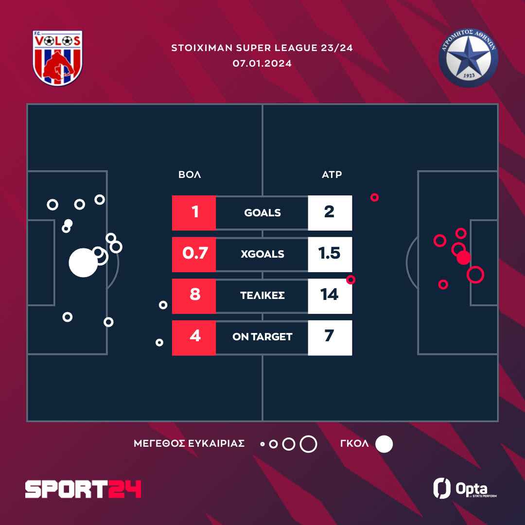 Τα xgoals στην αναμέτρηση Βόλος - Ατρόμητος SPORT24/OPTA