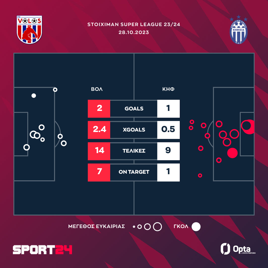 Την πρώτη νίκη του στη Stoiximan Super League πανηγύρισε ο Βόλος. Οι Θεσσαλοί επικράτησαν 2-1 της Κηφισιάς στο Πανθεσσαλικό για την 9η αγωνιστική του πρωταθλήματος.