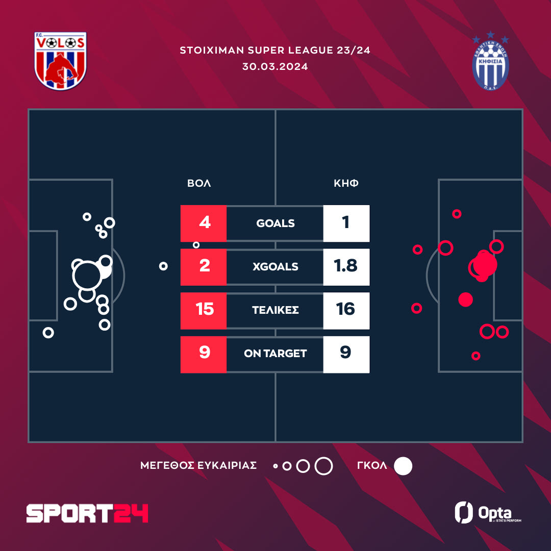 Τα xgoals της αναμέτρησης Βόλος - Κηφισιά SPORT24/OPTA