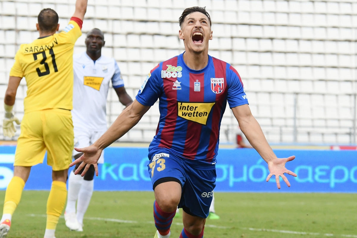 Ο Μπαρτόλο πανηγυρίζει γκολ του στην αναμέτρηση του Βόλου με τη Λαμία