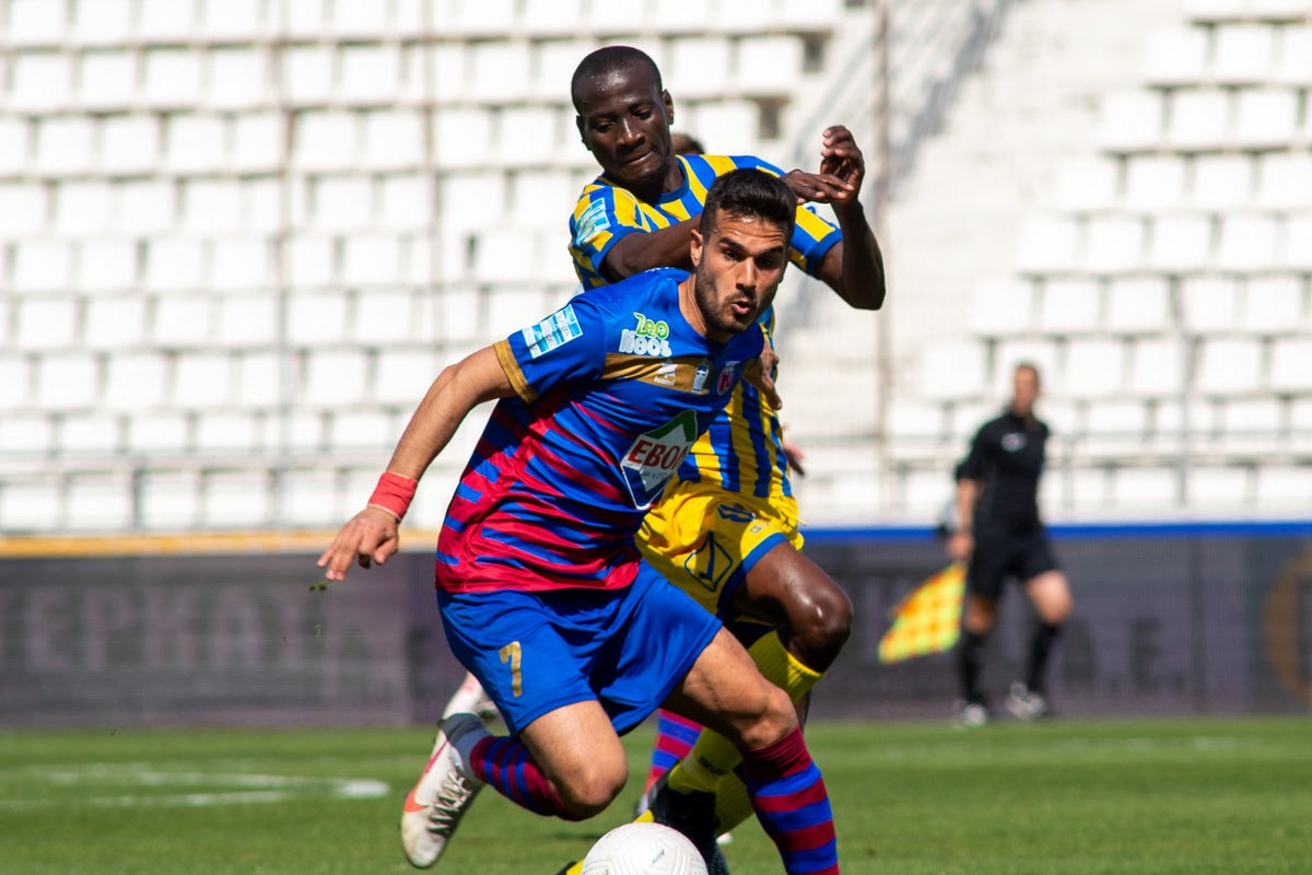 Ο Τάσος Κρητικός κοντρολάρει την μπάλα στο Βόλος - Παναιτωλικός Eurokinissi Sports
