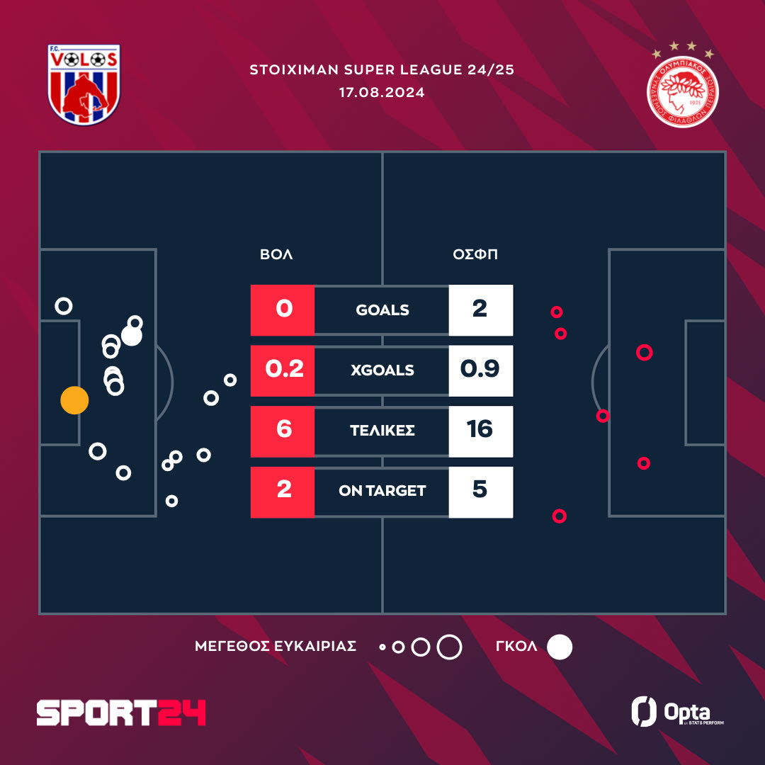 Ο Ολυμπιακός μπήκε με τον καλύτερο δυνατό τρόπο στην πρεμιέρα του στην Stoiximan Super League. Οι ερυθρόλευκοι επικράτησαν 2-0 του Βόλου στο Πανθεσσαλικό Στάδιο, στις κερκίδες του οποίου βρέθηκαν περίπου 8.000 οπαδοί των Πειραιωτών.