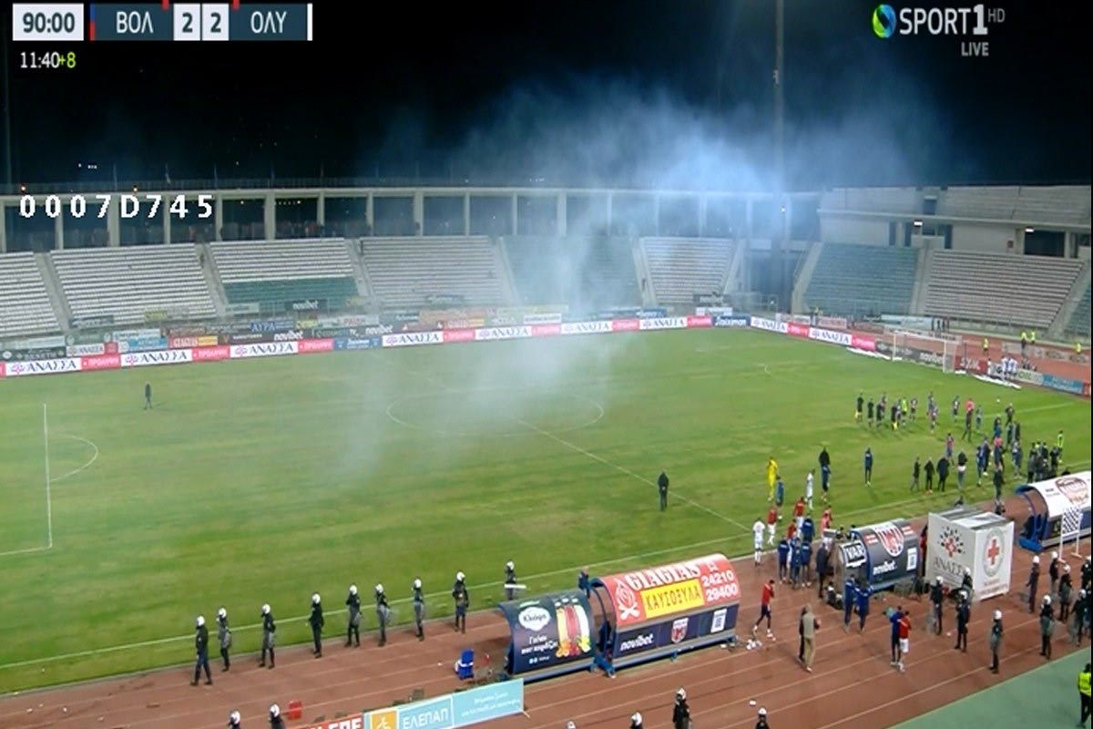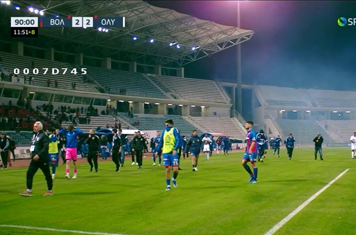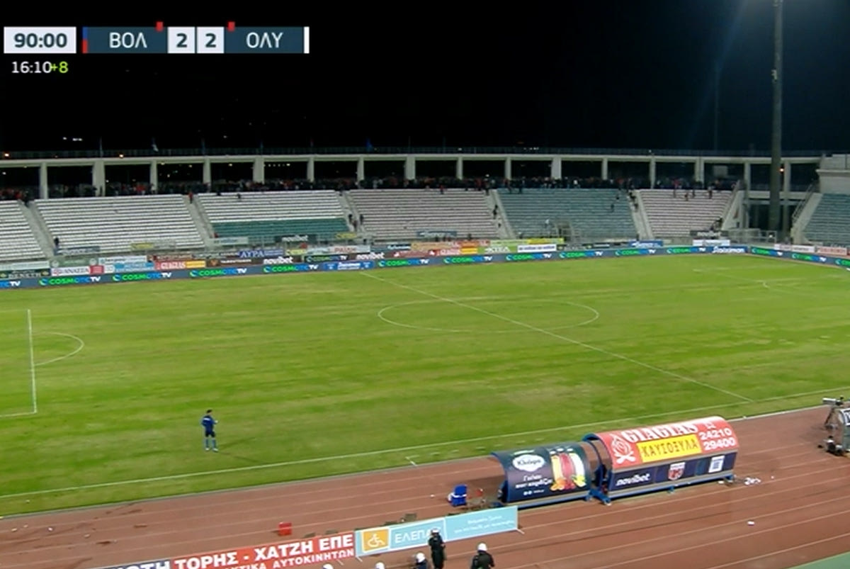 Η αναμέτρηση του Βόλου με τον Ολυμπιακό διεκόπη στο 5ο λεπτό των καθυστερήσεων κι ενώ το σκορ ήταν 2-2.