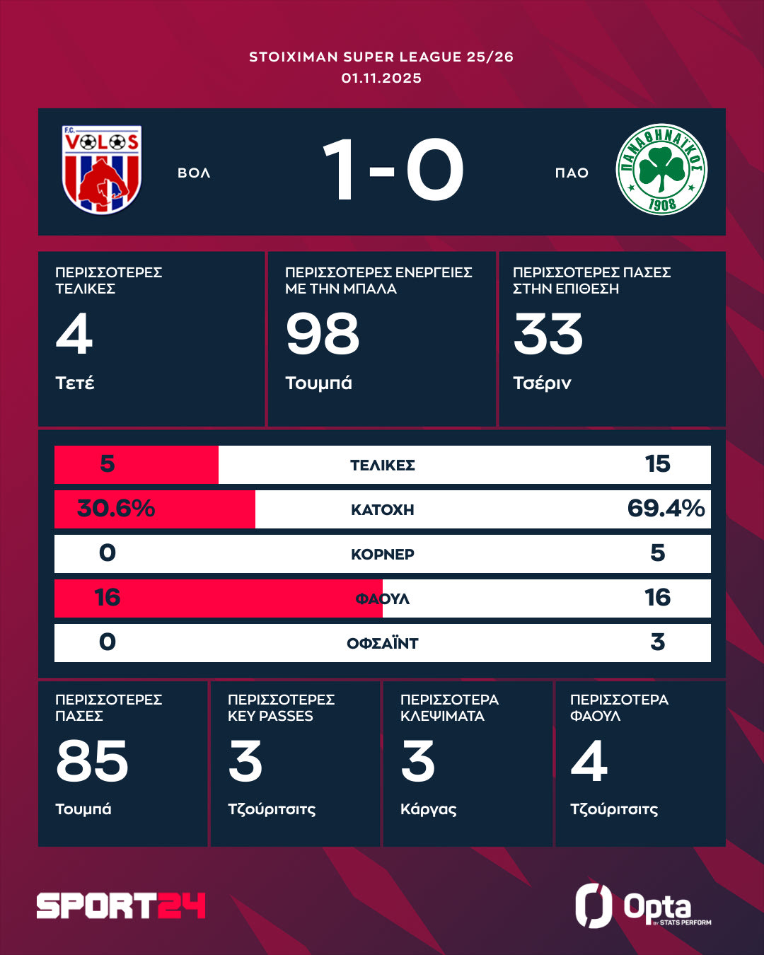 Βόλος – Παναθηναϊκός 1-0: Οι Θεσσαλοί προσγείωσαν ανώμαλα τους πράσινους με την γκολάρα του Λάμπρου, πρώτη ήττα για τον Μπενίτεθ