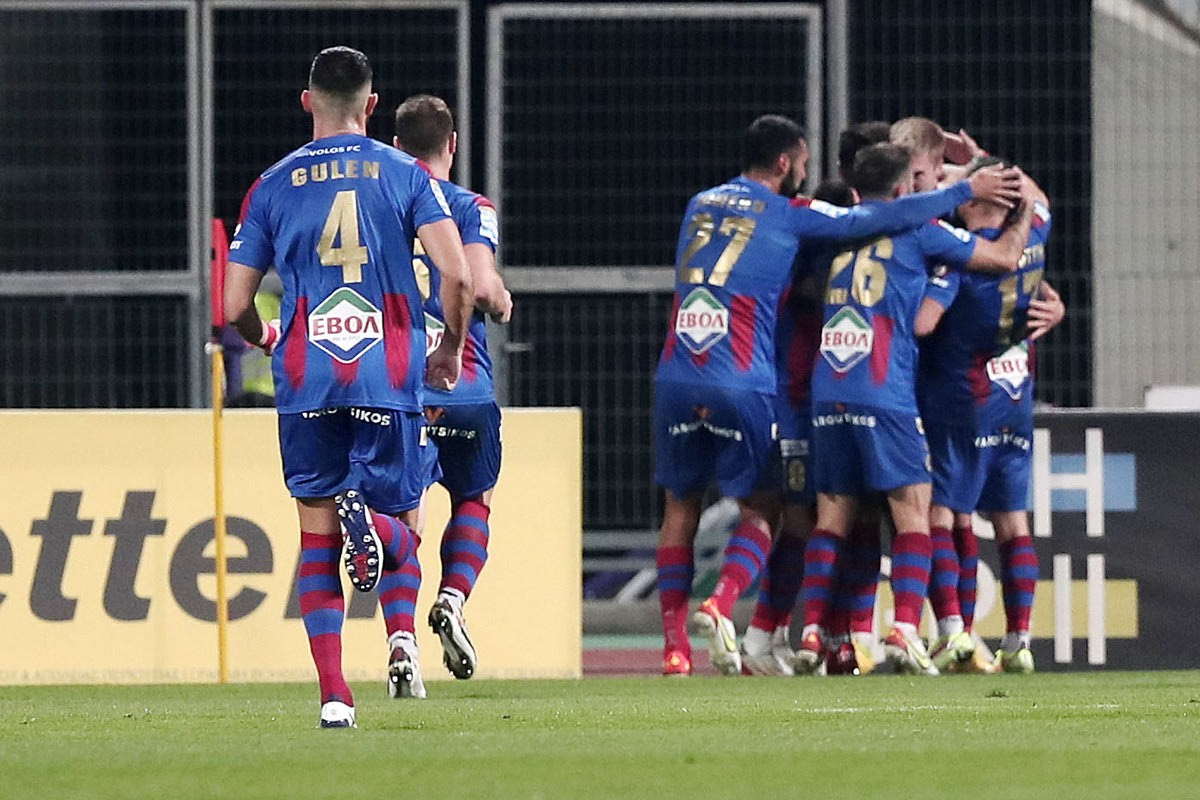 Οι παίκτες του Βόλου πανηγυρίζουν γκολ απέναντι στον Παναθηναϊκό